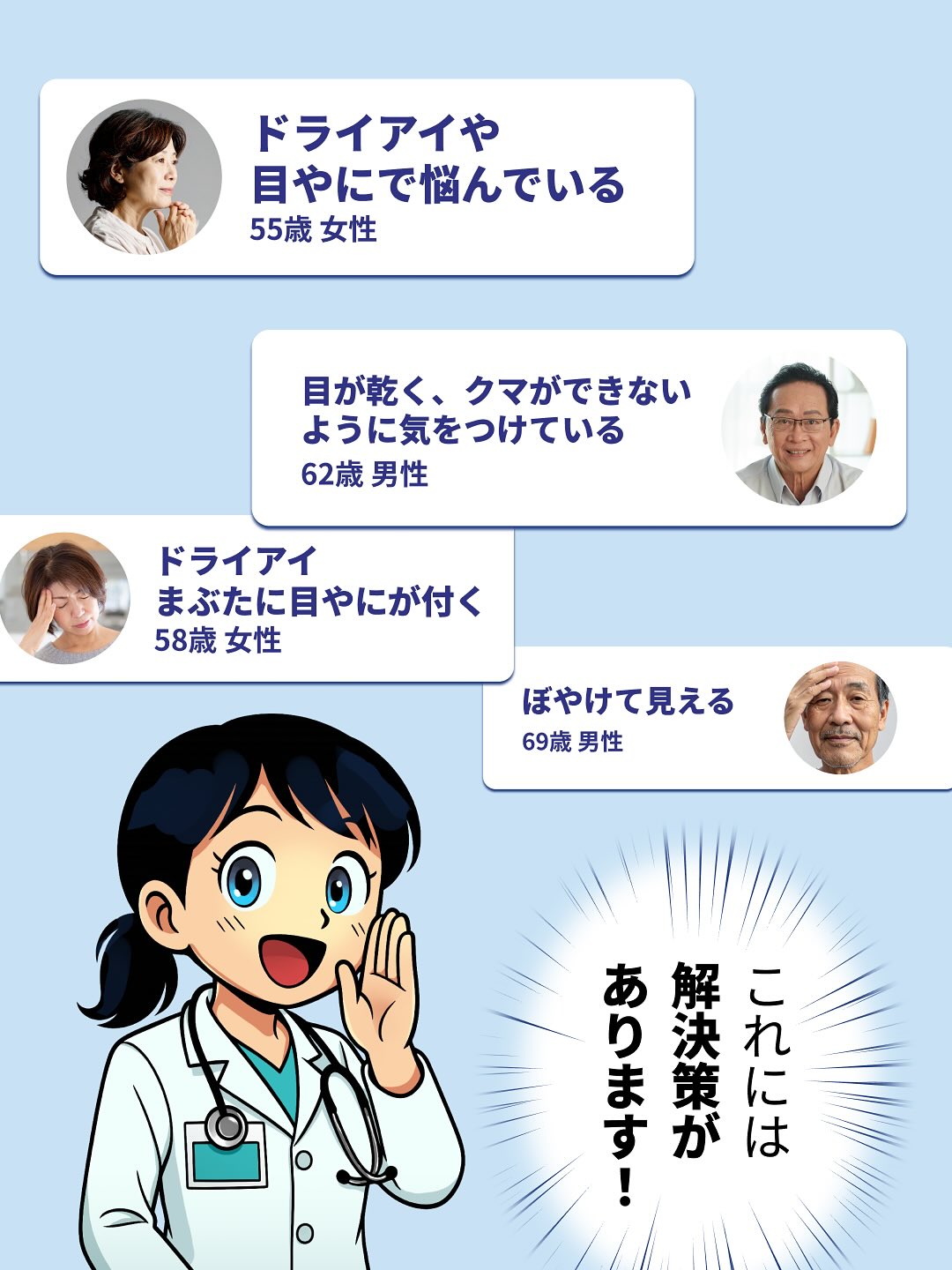 年齢を重ねるにつれて、ちょっとした目の不調でも、