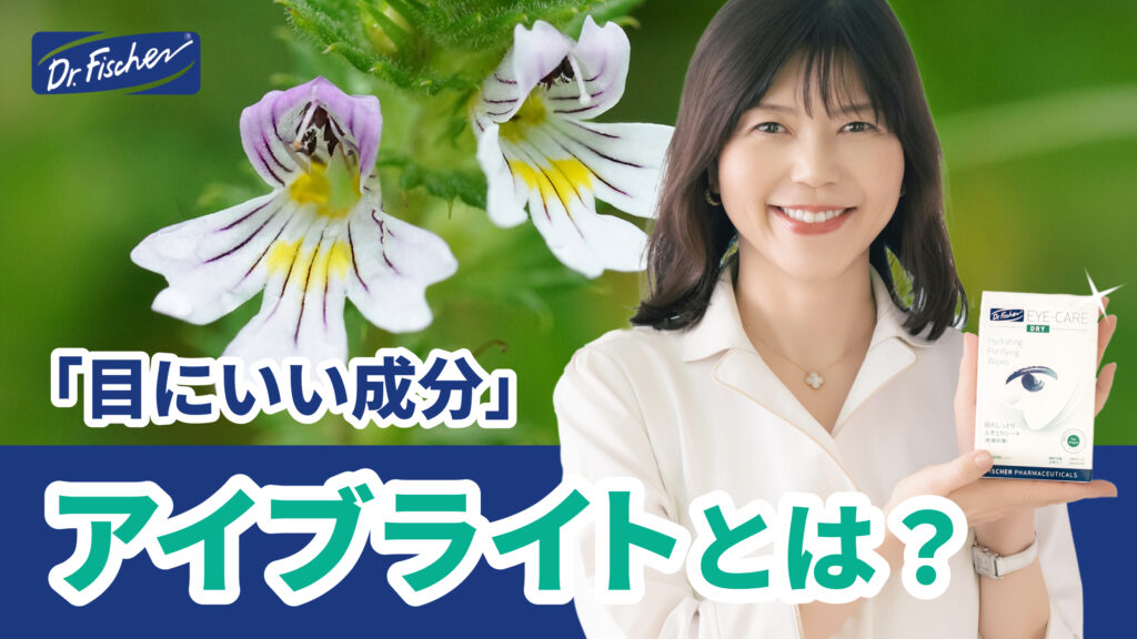ドクター・フィッシャー 目元ふきとりシートは、防腐剤フリー、添加物不使用で目にやさしく、まぶたの拭き取りができる製品です。そのなかのDRYというシリーズの成分、アイブライトはヨーロッパ原産のハーブの木で、「目薬の木」として古来より知られています。使い方もご説明していますの、でぜひご覧ください!